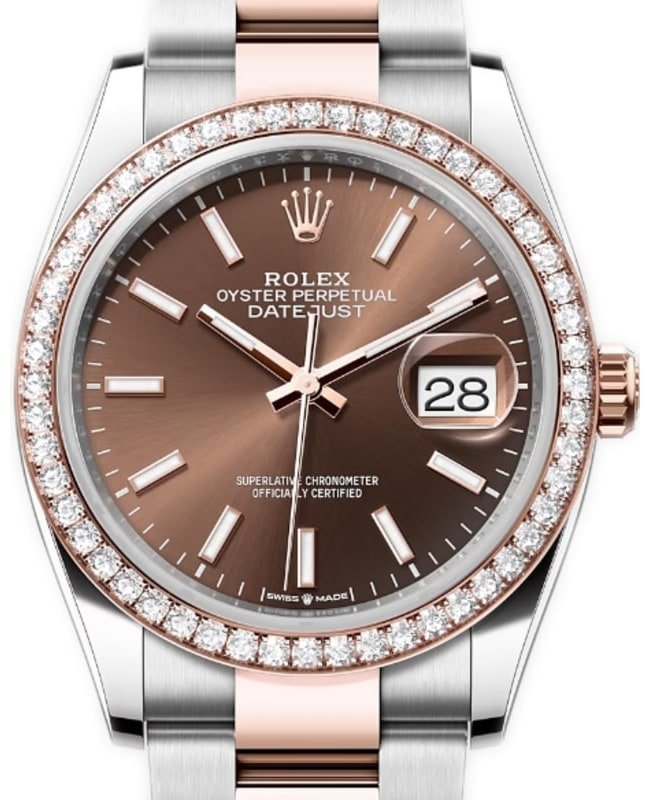 Rolex Datejust 36 Steel & Everose Gold Chocolate Dial Diamond Bezel Women’s Watch M126281RBR-0032