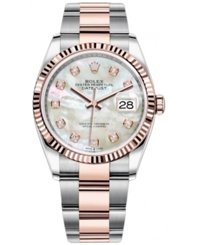 Rolex Datejust 36 Steel & Everose Gold Mother of Pearl Diamond Dial Women’s Watch M126231-0022