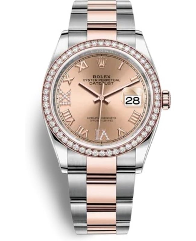 Rolex Datejust 36 Steel & Everose Gold Rose Diamond Pave Roman Dial Diamond Bezel Women’s Watch M126281RBR-0016