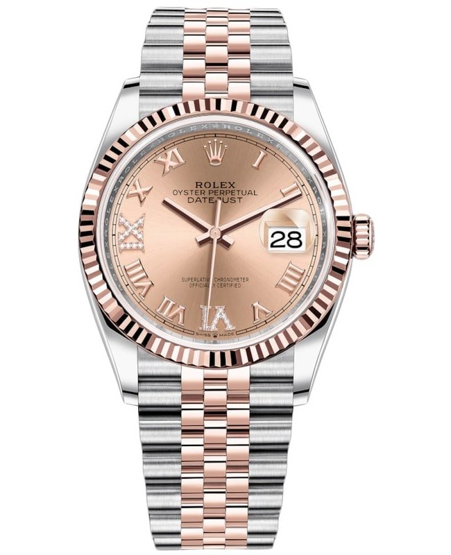 Rolex Datejust 36 Steel & Everose Gold Rose Diamond Pave Roman Dial Women’s Watch M126231-0027