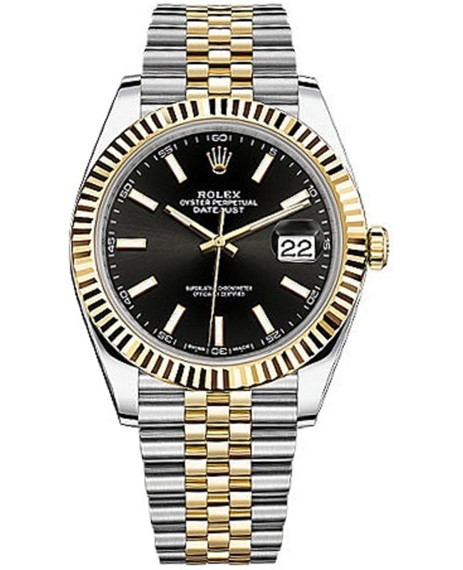 Brand New Authentic Rolex Datejust 41 Black Dial Men’s Luxury Watch Model M126333-0014. Stainless Steel with 18kt Yellow Gold case with Stainless Steel and 18kt Yellow Gold Jubilee style watch band. Crownclasp clasp. Fluted bezel. Dial description: Luminous Filled Yellow gold-tone hands and index hour markers on Black dial. Automatic – Chronometer movement. Powered by Rolex Calibre 3235 engine with 70 hours power reserve. Watch functions: Date, Power Reserve, Hour, Minute, Second. Screw Down crown. Scratch Resistant Sapphire crystal. Case size: 41mm. Solid case back. 100 Meters – 330 Feet water resistant. 5-year WatchMaxx warranty.