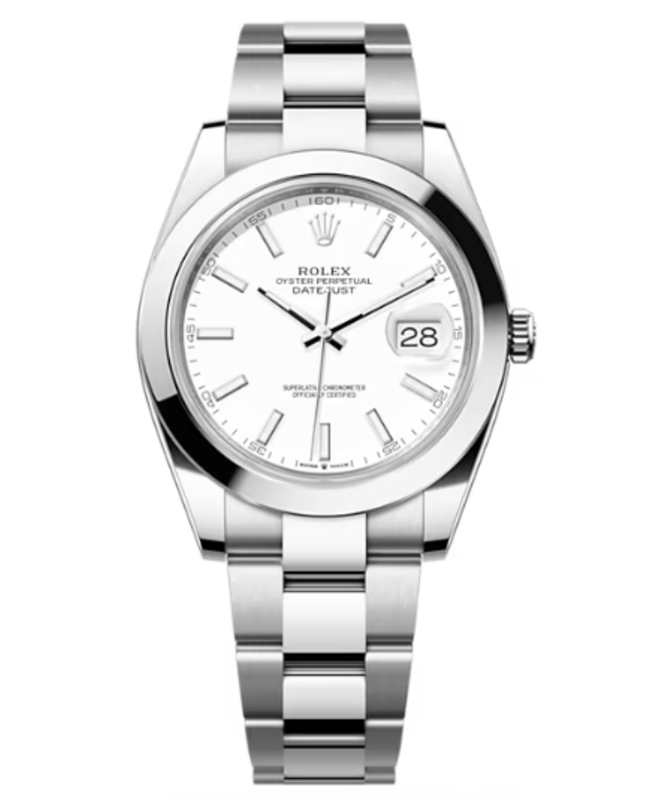 Brand New Authentic Rolex Datejust 41 Stainless Steel White Dial Men’s Luxury Watch Model M126300-0005. Polished Stainless Steel case with Brushed and Polished Stainless Steel Oyster Style Bracelet watch band. Oysterclasp clasp. Fixed-Smooth bezel. Dial description: Luminescent Silver Hands and Stick Hour Markers with Minute Markers Around the Outer Rim and the Date at 3 o’clock on a White dial. Automatic movement. Chronograph sub-dials display: Date. Calendar: Date at 3 o’clock. Powered by Rolex Calibre 3235 engine with 70 hours power reserve. Watch functions: Date, Power Reserve, Hour, Minute, Second. Screw down crown. Scratch Resistant Sapphire crystal. Round case shape. Case size: 41mm. Solid case back. 100 Meters – 330 Feet water resistant. 5-year WatchMaxx warranty. Also known as model: 126300-WHTSO.