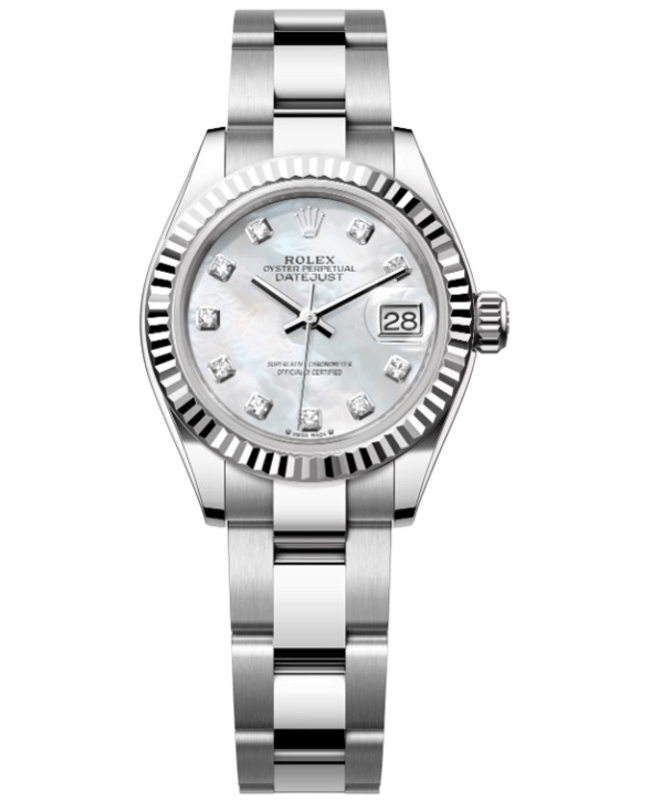 Rolex Lady-Datejust 28 Automatic Mother of Pearl Diamond Dial White Gold and Steel Women’s Watch M279174-0010